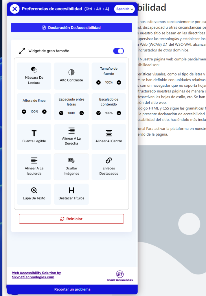 Preparación de la presente declaración de accesibilidad Hemos incorporado el sistema One Click Accessibility a nuestro sitio web. Este plugin mejora la accesibilidad y usabilidad del sitio, haciéndolo más inclusivo y fácil de usar. Esta declaración fue preparada el 1 de marzo de 2023.